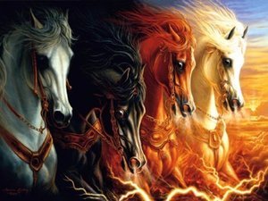 Les quatre cavaliers effrayants décrits dans les quatre sceaux du chapitre 6 de l'Apocalypse sont déjà à l'œuvre et il signale leur présence par les catastrophes et des malheurs qui se produisent dans le monde entier.